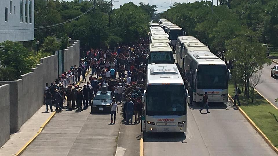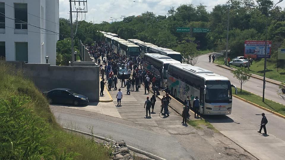- Tras culminar la protesta abordaron 11 autobuses en los que partieron a la Normal Rural de Ayotzinapa.