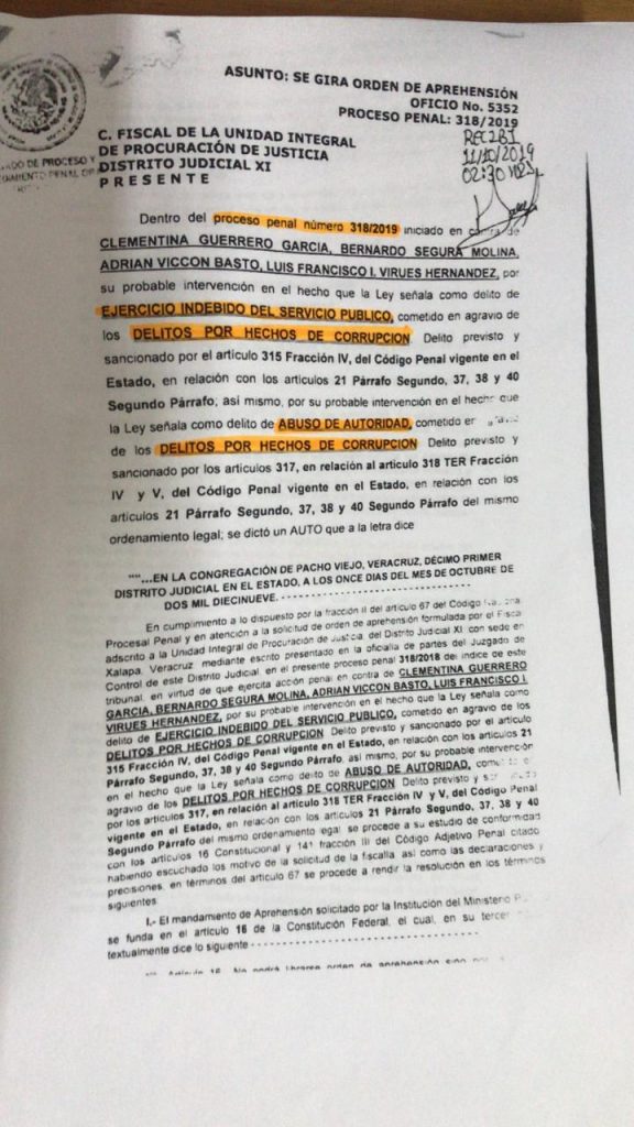 Y es que la ex titular de la Secretaría de Finanzas y Planeación (SEFIPLAN) y actual tesorera del ayuntamiento de Xalapa, Clementina “N”, también está involucrada en el proceso penal 318/2019 por el que fue detenido Bernardo “N” este viernes.
