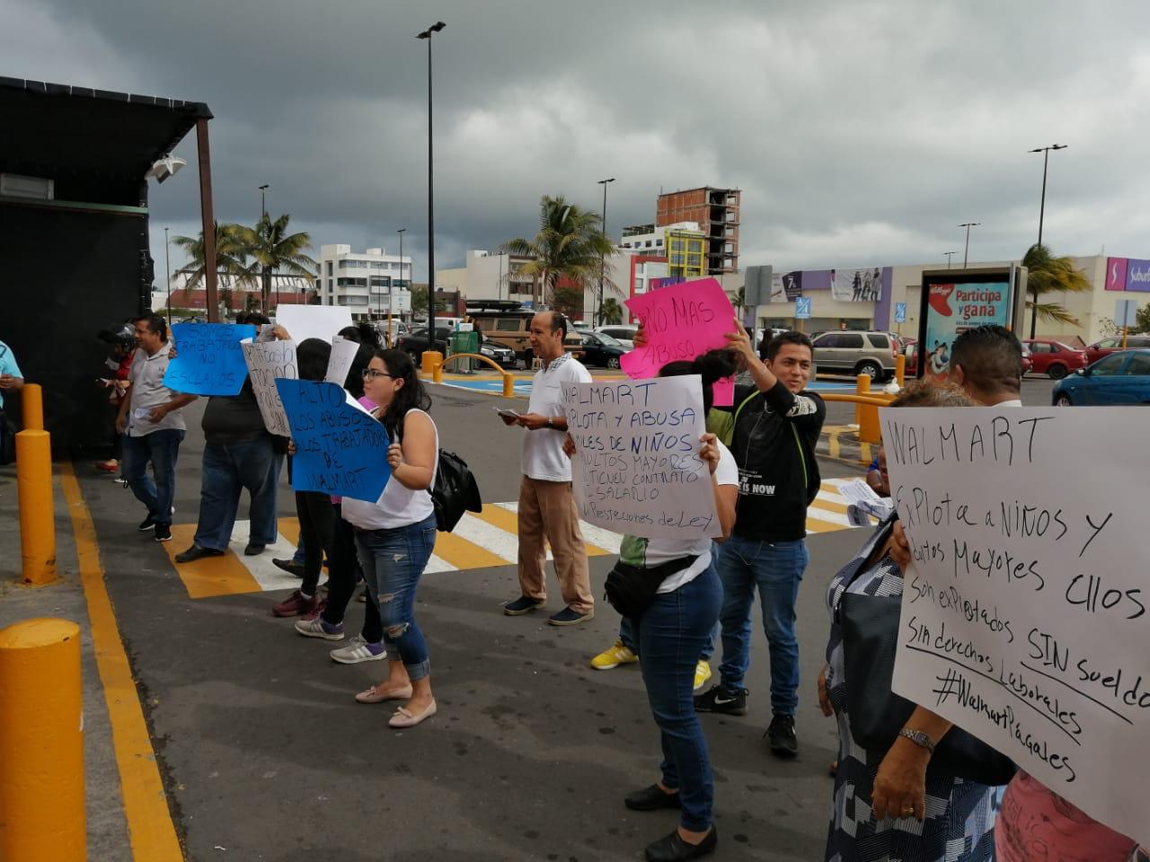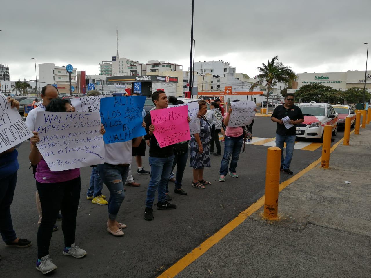 La sección 20 de gastronómicos de CROC-Veracruz realizó esta mañana una manifestación en la compañía multinacional Walmart, pidiendo derechos laborales para niños y gente de la tercera edad.