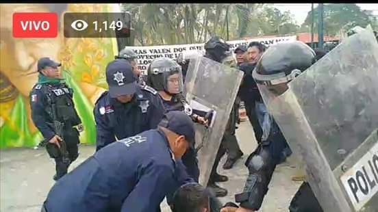 Al filo de las 12:15 horas, elementos de la policía estatal arribaron al parque temático armados con equipo antimotines para enfrentar a los manifestantes que desde temprana hora se habían apostado a las afueras de este recinto, exigiendo que el gobierno estatal cumpliera con los acuerdos pactados.