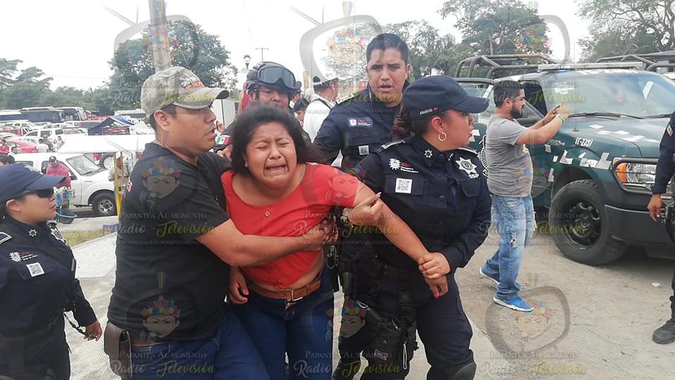 Una intensa movilización policial se vio durante unos minutos, donde fueron desalojados todos los manifestantes quienes tuvieron que salir corriendo ante la presencia de los uniformados, mientras que el líder Antonio Hinojosa Saldaña, fue detenido y llevado a bordo de una unidad para que responda por el posible delito que se le finque.