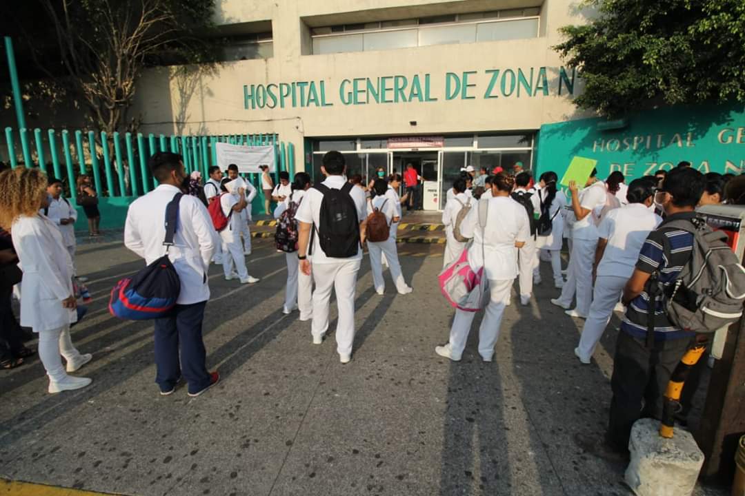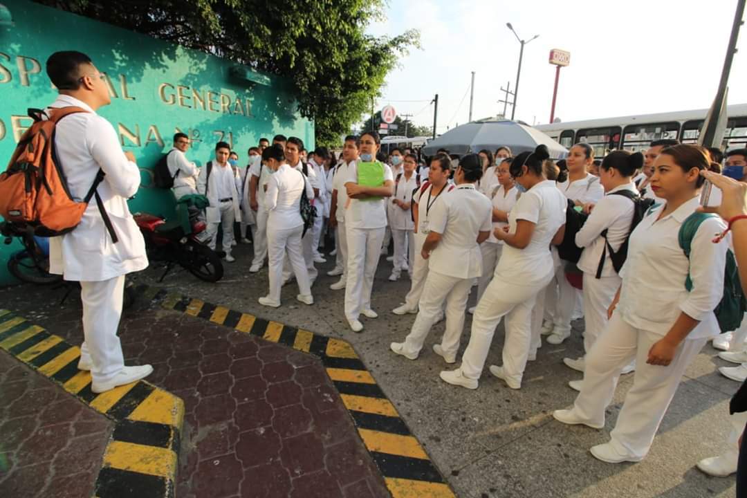 Médicos internos de Pregrado de la Universidad Veracruzana, se manifestaron la mañana de este lunes afuera del Hospital General 71 del Instituto Mexicano del Seguro Social (IMSS) en Veracruz, para exigir se les brinden los insumos necesarios en medio de la contingencia por el Coronavirus.
