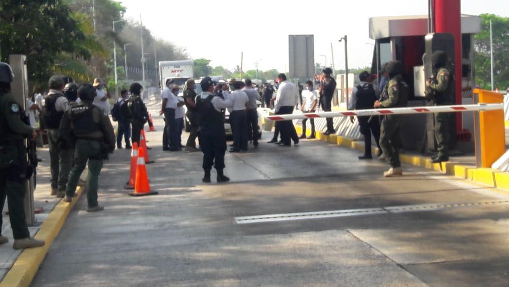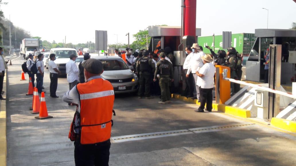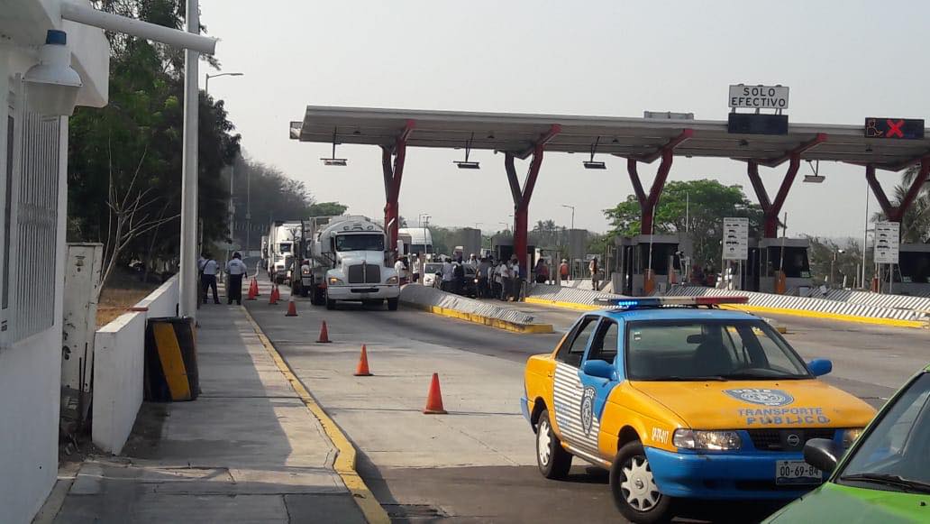 Los inconformes cerraron parcialmente los módulos con dirección Veracruz-Ciudad Cardel, dejando el paso libre y sin cobro sobre uno de los carriles.