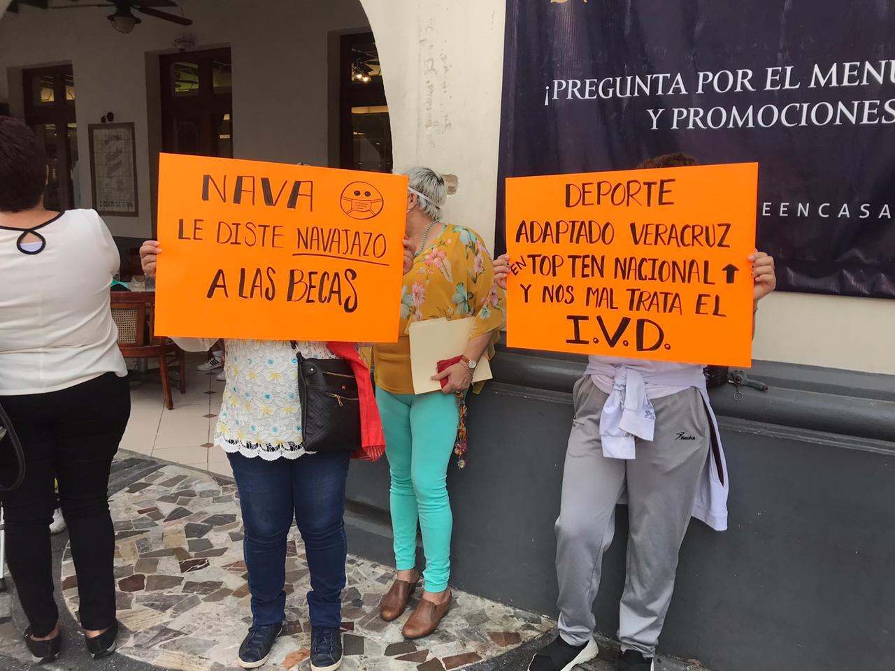 Esta mañana frente al zócalo de la Ciudad de Veracruz se manifiestaron deportistas discapacitados en centro histórico de #Veracruz por no pagarles becas el IVED