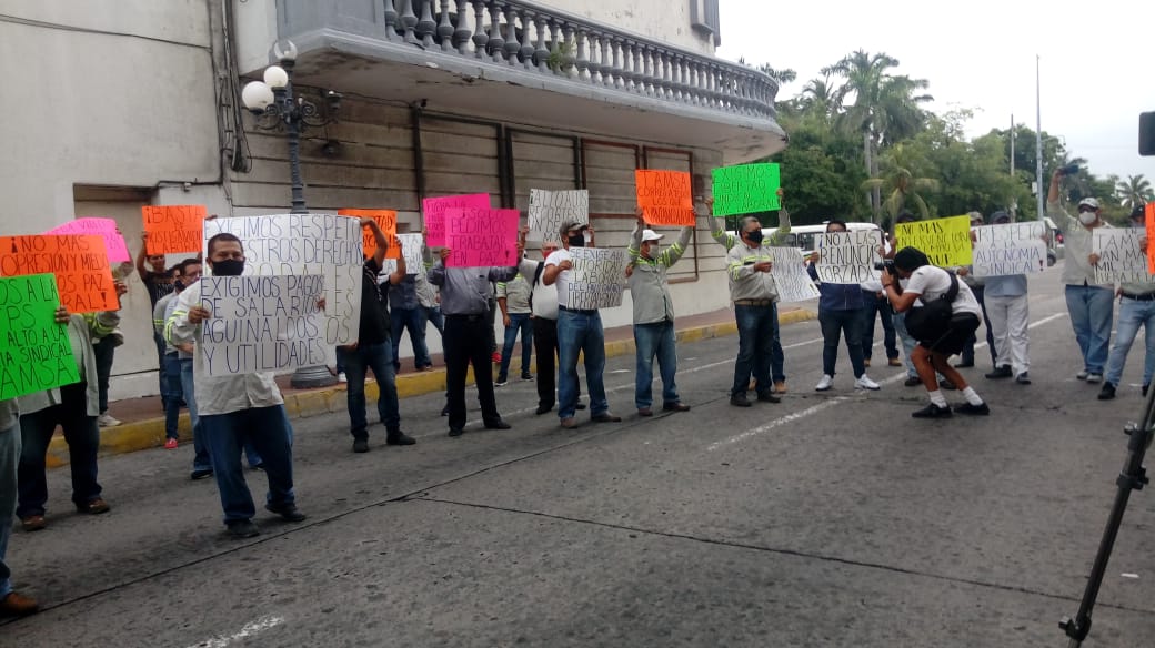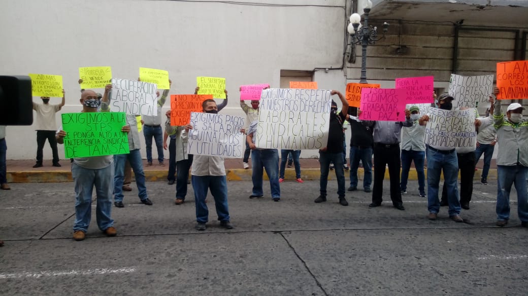 Trabajadores sindicalizados de Tamsa bloquearon la mañana de este Jueves la avenida 5 de Mayo frente al Palacio Federal de Veracruz.