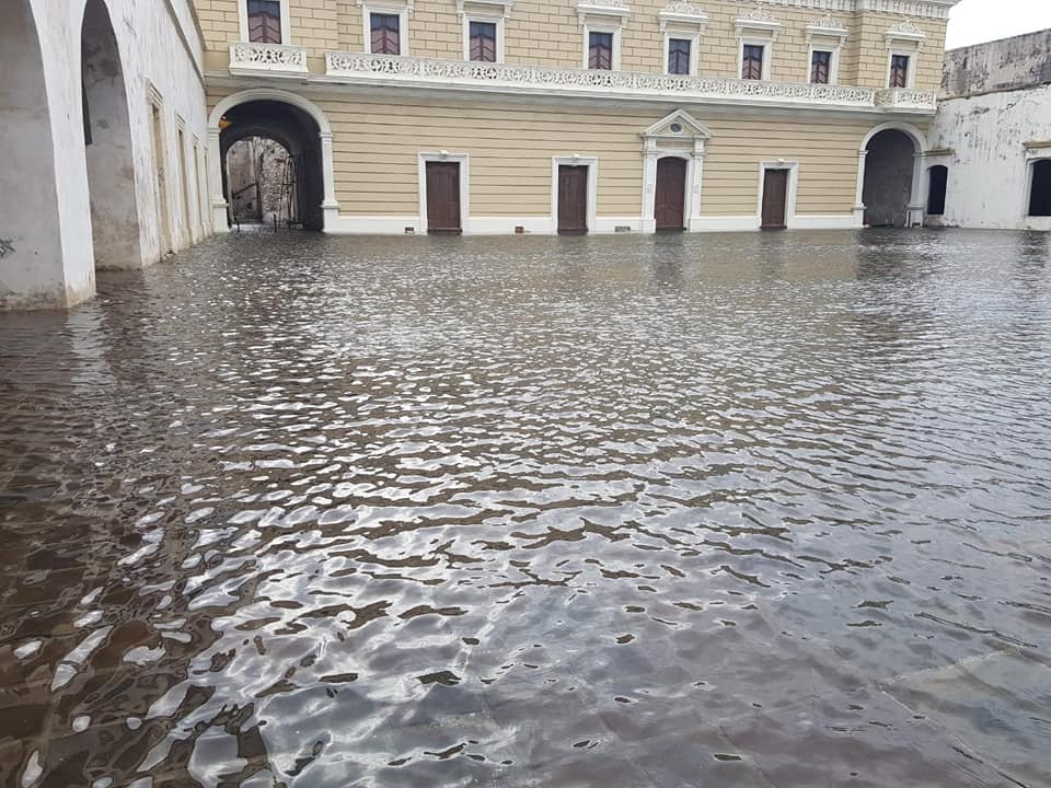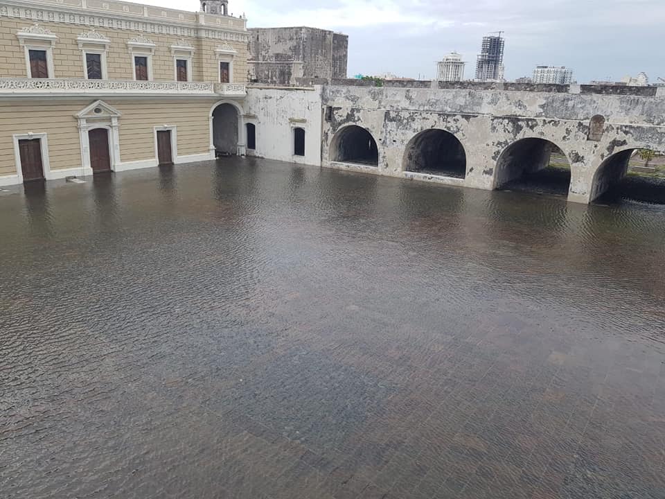 El funcionario compartió imágenes de cómo lució la Plaza del Gobernador, después del desfogue y la limpieza, pues hay recordar que la fortaleza se construyó sobre un islote, hecho de coral, que tiene asentamientos irregulares propios del lugar y que el nivel del mar ha aumentado en las últimas dos décadas, dijo.