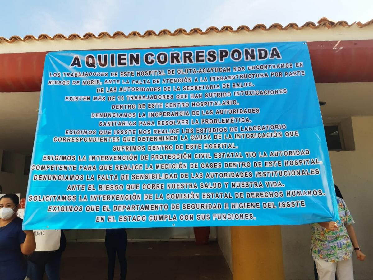 Trabajadores del Hospital de Villa Oluta perteneciente al sector salud del estado, denunciaron intoxicación de más de 10 compañeros