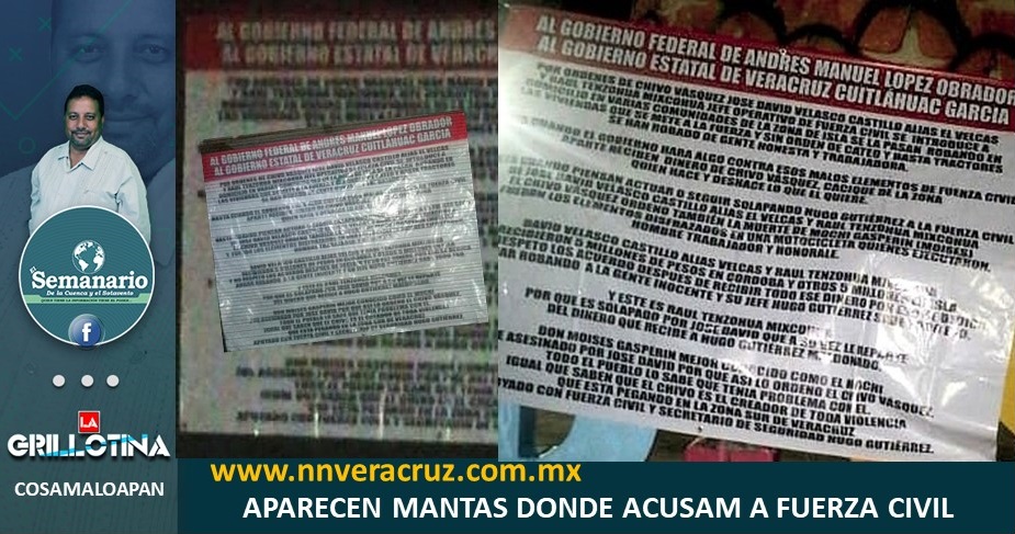 Continúan los señalamientos en contra de elementos de la Secretaría de Seguridad Pública, del área de Fuerza Civil y el titular de la misma, Hugo Gutiérrez Maldonado. Personas desconocidas colocaron diversas lonas en el corredor Cosamaloapan-Acayucan.