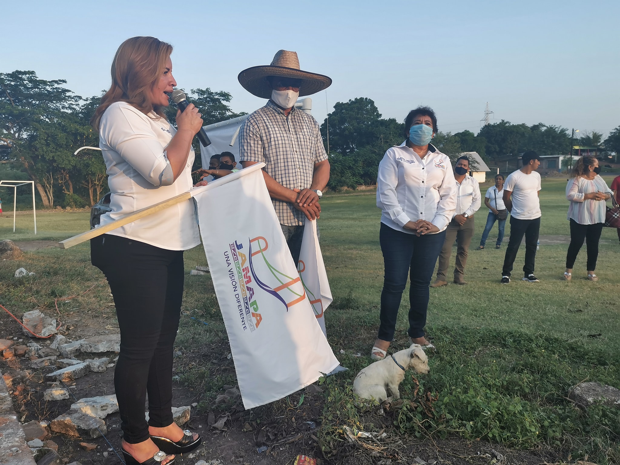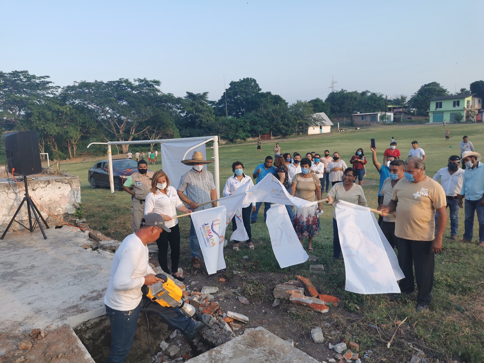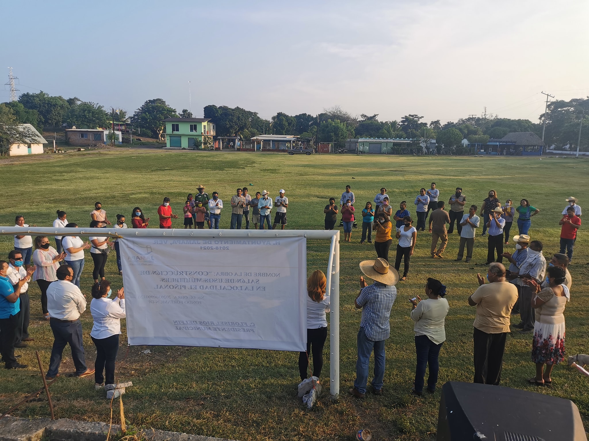 Buscando el beneficio de la población, la alcaldesa de Jamapa Florisel Ríos Delfín dio el banderazo de inicio a la obra de la construcción del «Salón de Usos Múltiples», en la localidad del Piñonal.