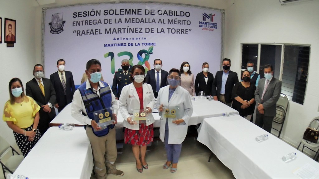 En el marco del 138 aniversario de la creación del municipio de Martínez de la Torre, la comuna martinense que preside el Alcalde José De la Torre, hizo entrega de la Medalla al mérito ciudadano «Rafael Martínez de la Torre» al personal del Instituto Mexicano del Seguro Social (IMSS), Hospital General de zona y la Unidad municipal de Protección Civil, tres instituciones dedicadas a combatir el COVID-19.