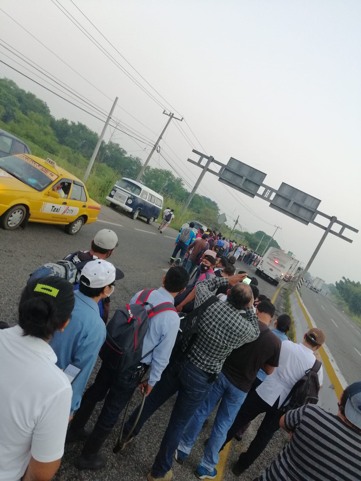 Hasta una hora esperan este jueves ciudadanos para ser cruzados en el paso de La Majahua de la carretera #Villahermosa–#Teapa. La mayoría se dirigen a sus centros de trabajo en la capital tabasqueña.