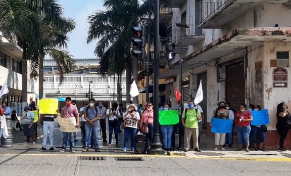 Esta mañana, integrantes de Antorcha Campesina en Veracruz, se manifestaron en la avenida Zaragoza, frente al ayuntamiento de Veracruz, para mostrar su inconformidad por el presupuesto de egresos 2021.