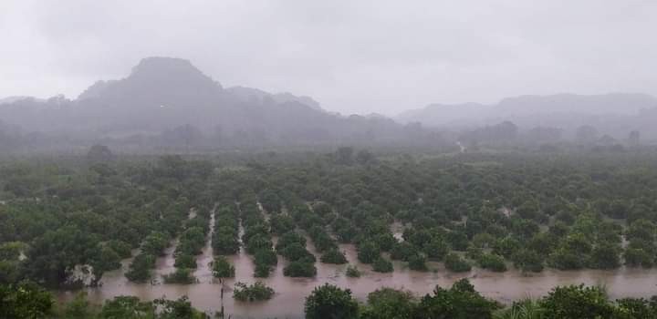 Por las torrenciales lluvias de la madrugada de este miércoles 18 de noviembre, el río Tecolutla, a la altura de la comunidad de Coronado se desbordó