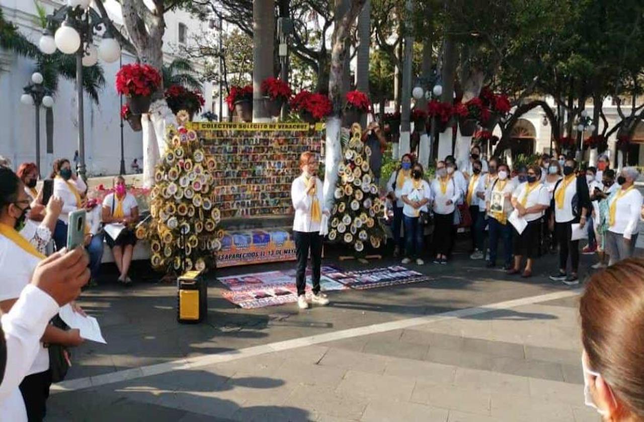 Madres y familiares de personas desaparecidas integrados al Colectivo Solecito realizaron una concentración en el zócalo de la Veracruz, en donde se colocó hace unos días un par de «arbolitos del dolor», con fotografías de personas desaparecidas.