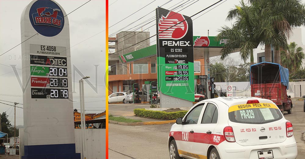 Poza Rica, Ver.- La creación de un cuota complementaria al impuesto especial sobre producción y servicios de las gasolinas, ha traído como consecuencia que el precio del combustible baje o se incremente de un día para otro, dependiendo de las ventas. Este viernes el precio de las gasolinas y el diésel en esta ciudad rebasó los 20 pesos.