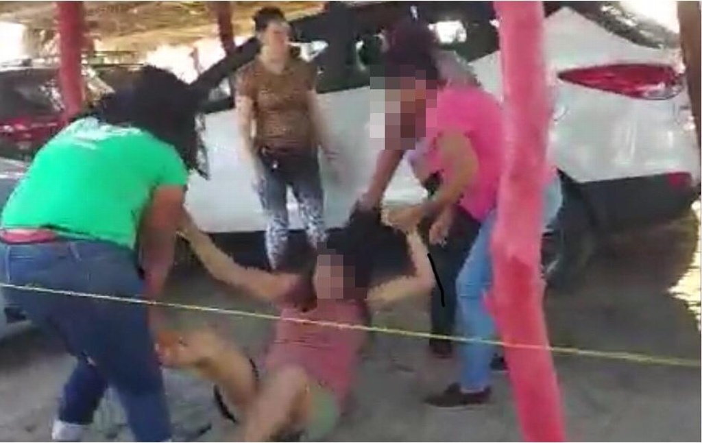 En el video se observa el momento en el que mujeres golpean y arrastran a otra mujer en la zona de palapas, por lo que los visitantes se levantan rápidamente de sus mesas para evitar la trifulca.