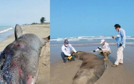 Especialistas en fauna marina ya investigan el hallazgo de un cachalote muerto en playas de Chile Frío en Tuxpan; causó asombro la presencia del animal que habita en aguas profundas y se alimenta de calamares