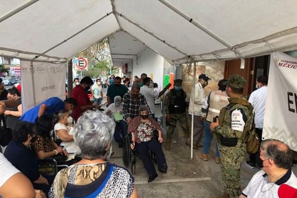 En el módulo ubicado en en Club de Leones inició la vacunación antes de las 8:00 de la mañana por lo que la fila va rápida.