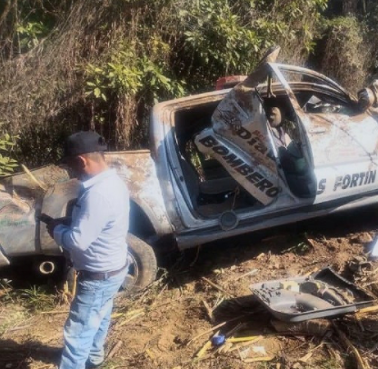 La tarde de este Domingo un aparatoso accidente sufrieron elementos de águilas negras y del H. Cuerpo de bomberos voluntarios veracruzanos del municipio de Fortín cuando se desplazaban sobre la carretera estatal Vaqueria – Cacahualco a la altura de la comunidad de Maquixtla.
