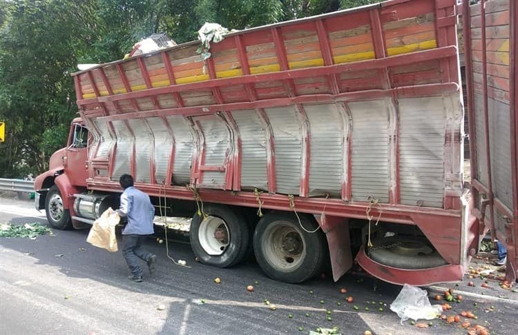 El choque contra la barra de contención de un camión Torton cargado de verdura en la autopista 150 D desató acciones de rapiña por parte de pobladores de Nogales, quienes robaron todo lo que pudieron.
