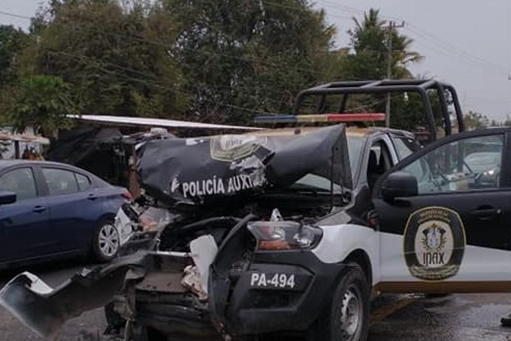 El choque fue entre una camioneta del IMSS y una patrulla del Instituto de la Policía Auxiliar y Protección Patrimonial para el Estado de Veracruz (IPAX).