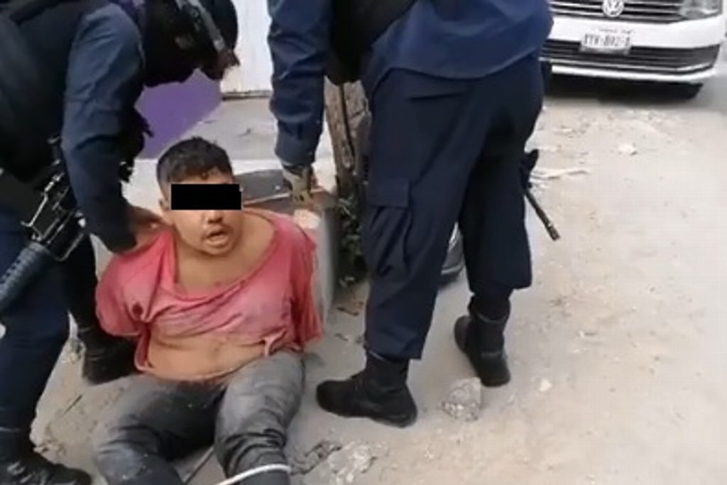 Luego de que supuestamente sacó una bocina, los vecinos lo sometieron y amarraron a un poste, posteriormente lo entregaron a la Policía Estatal.