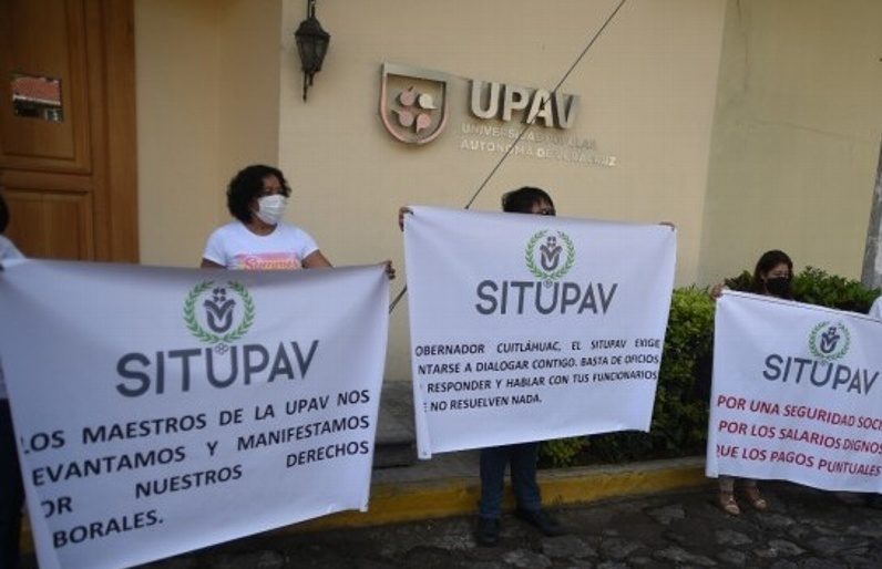 Xalapa, Ver. Profesores y profesoras de bachillerato y licenciaturas de la Universidad Popular Autónoma de Veracruz (UPAV) se manifestaron en las oficinas en la colonia 2 de abril de esta ciudad, para exigir el pago de salarios que les adeudan desde hace dos y cuatro meses.