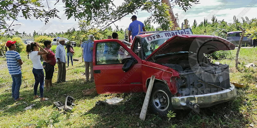 La mujer quedó prensada debido al fuerte impactó, pues la camioneta se salió de la carretera a la altura del rancho «Los Pericos» e impactó contra un árbol, lo que provocó que la mujer quedará prensada.