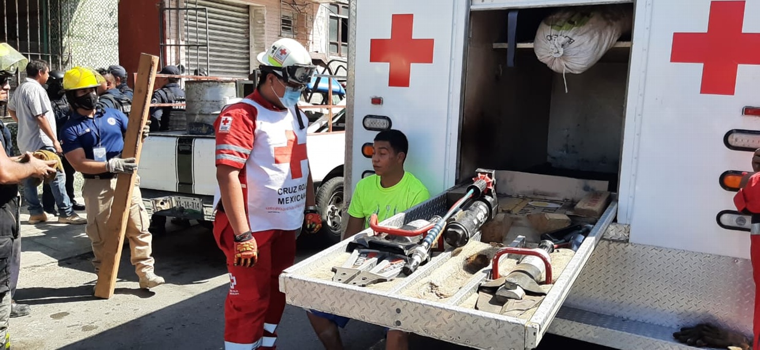 Inmediatamente Bomberos de Veracruz y Cruz Roja acudieron al lugar para atender la emergencia y gracias a que una viga quedó atravesada sobre la señora, el resto de la estructura no la sepultó.