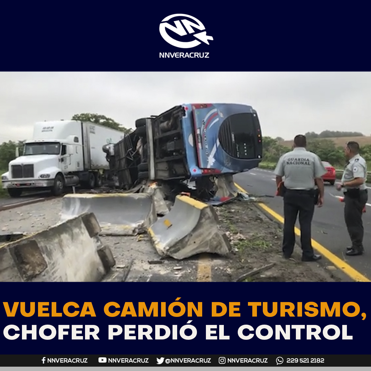 Vuelca un camión de turismo en la autopista La Tinaja-Cosoleacaque al perder el control de la unidad el conductor quien resulto lesionado.