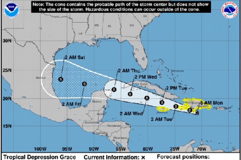 la depresión tropical Grace podría ser ya de riesgo de ahí internarse  al Golfo de México.