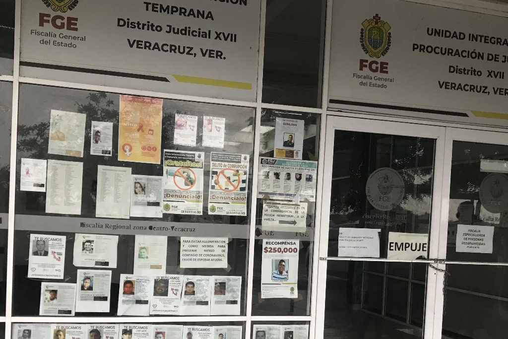 Integrantes del Colectivo Justicia y Dignidad de personas desaparecidas en Veracruz, se manifestaron colocando lonas en la Fiscalía Regional en este municipio porteño.
