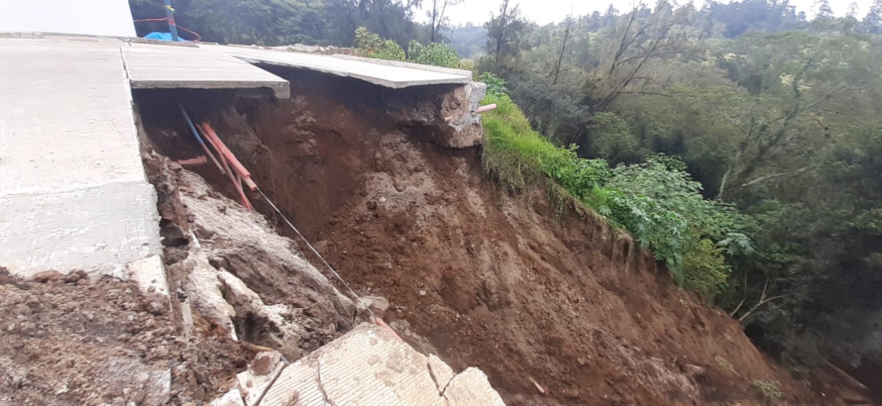 En tanto que los habitantes de una vivienda cercana al deslizamiento, tuvieron que abandonar la casa, ya que temen que colapse.