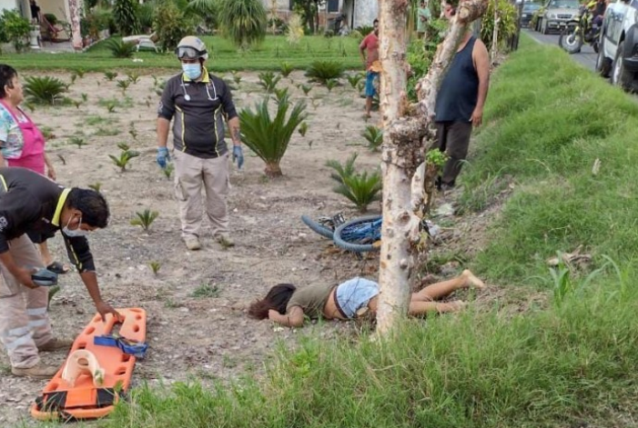 bordo de su bicicleta, que por el impacto del golpe murió al momento.