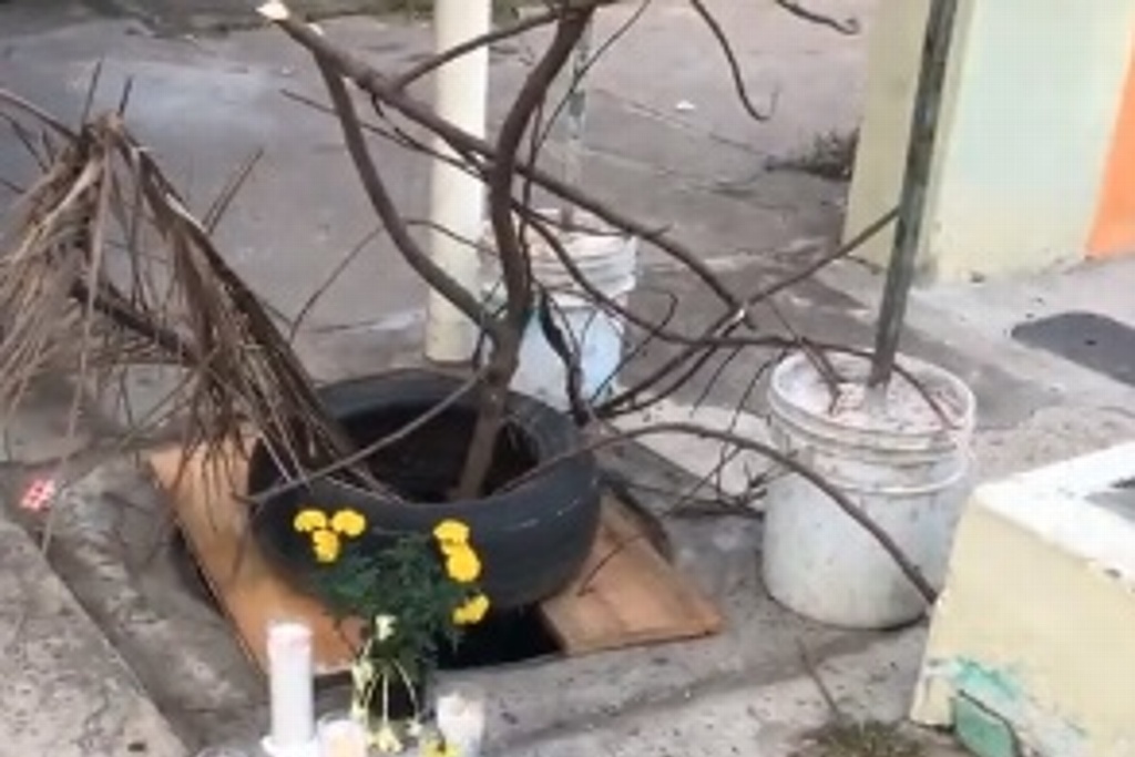 Reconoció que en toda la colonia hay más de 40 registros robados, y que lamentablemente las autoridades no hacen nada, además de ellos como vecinos, ya que temen haya represalias si intervienen para evitar se lleven estas estructuras metálicas. El registro donde cayó el niño, fue señalizado con maderas, palos y una llanta, pero a su alrededor se encuentran varias veladoras encendidas que han dejado mismos vecinos tras este triste acontecimiento.