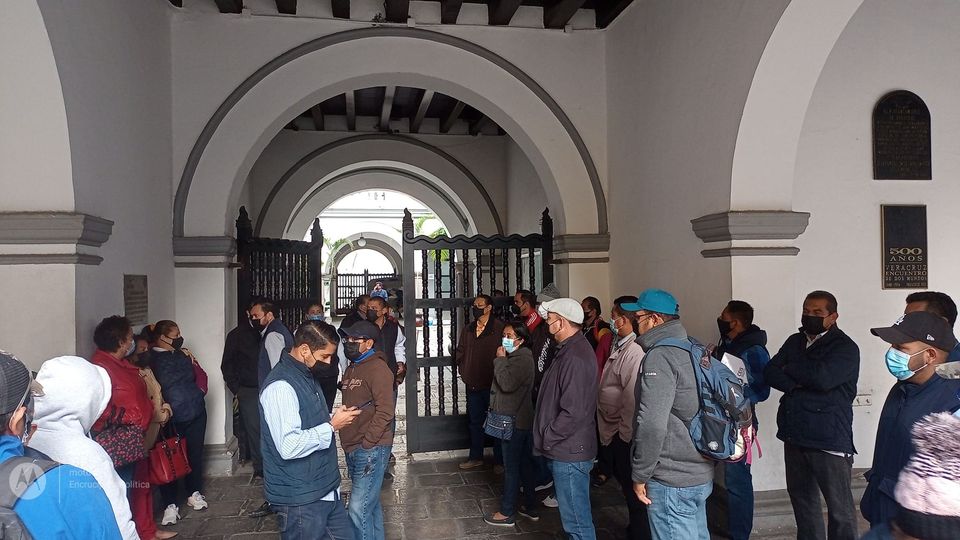 El grupo de ex trabajadores se apostaron en la puerta lateral izquierda del Palacio Municipal, donde fueron recibidos por personal del área de gobernación.