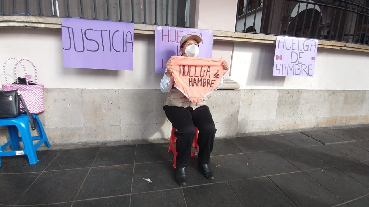 Una extrabajadora del Ayuntamiento de Xalapa llamada Margarita Juárez Pérez, se puso en huelga de hambre este Martes en los pasillos de Palacio Municipal de Xalapa, en donde solicita el apoyo del presidente Ricardo Ahued Bardahuil.