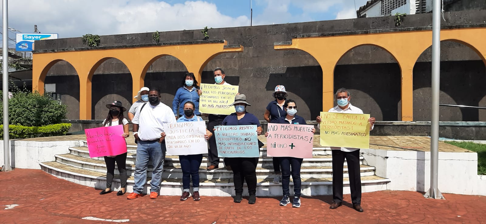Temprano, el grupo de periodistas llegó al parque Hidalgo y ahí condenó los asesinatos contra sus similares, además de lanzar consignas: “ni uno más”, “no se mata la verdad matando periodistas” y “seguridad para ejercer la libertad de expresión”.