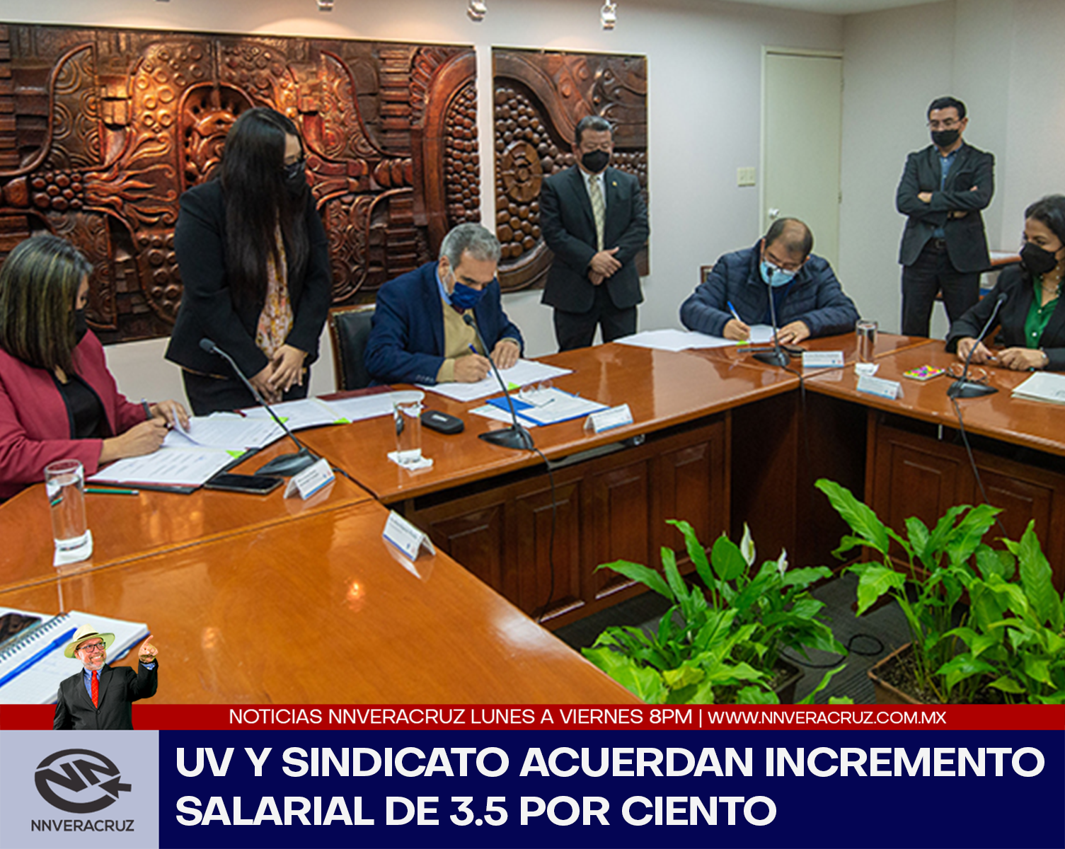 La Universidad Veracruzana (UV) firmó con el Sindicato Estatal de Trabajadores al Servicio de la Universidad Veracruzana (SETSUV) un convenio que establece el incremento salarial del 3.5 por ciento y otras prestaciones dentro de la revisión contractual, con lo que se concluye la primera etapa del proceso de negociación.