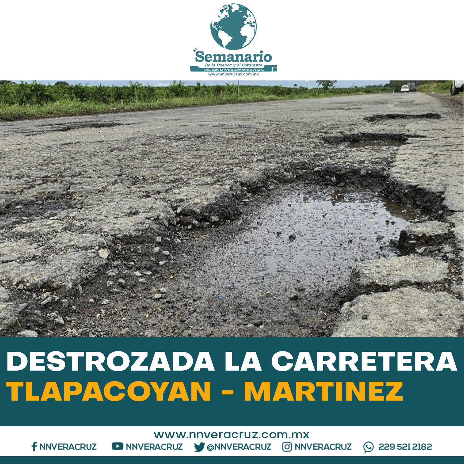 En pésimas condiciones se encuentra la carretera federal Amozoc – Nautla en su tramo Tlapacoyan – Martínez de la Torre, esta vía de comunicación presenta gran cantidad de baches y malas condiciones que exponen a los automovilistas, especialmente en estas temporadas de lluvias a sufrir accidentes carreteros que podrían tener incluso, consecuencias fatales, informo el habitante de la localidad Echeverría, Eliu Padilla.