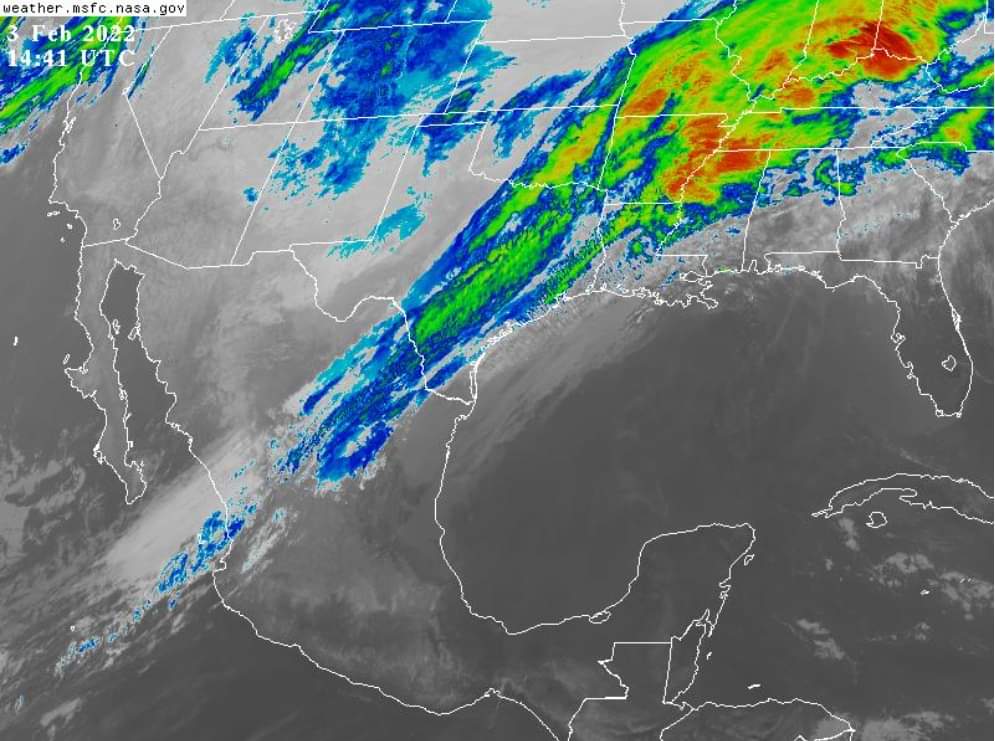 Paralelamente, a partir de esta mañana el frente frío 28 y su masa de aire ártico comenzarán afectarán al estado con aumento del potencial de lluvias con tormentas y viento.