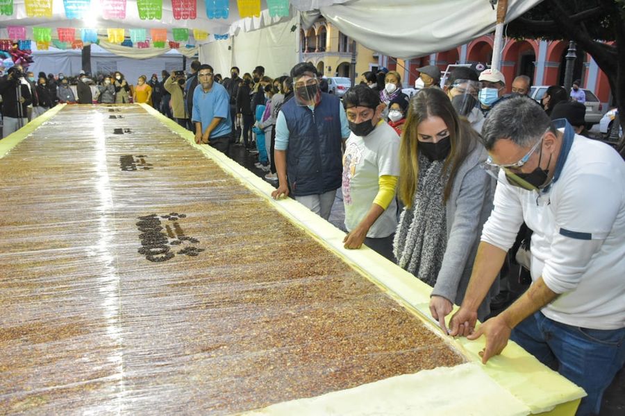 Para lograrlo, se involucraron 10 personas y se ocuparon 600 kilos de cacahuate, 150 kilos de azúcar y 300 kilos de panela, además fue saborizada con café; su valor final podría ascender a los 80 mil pesos en presupuesto, señaló uno de los creadores, Enrique Santillán. Ambas familias, buscan que la ciudadanía conozca este dulce, su producción artesanal, pero que además, no se pierda la tradición de consumirlo.
