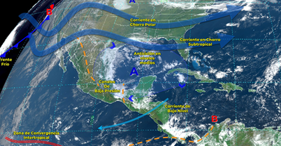 La Comisión Nacional del Agua (Conagua) informó que la circulación anticiclónica establecida sobre el Golfo de México mantendrá la advección de aire húmedo hacia Tamaulipas y Veracruz, situación que en combinación con los forzamientos orográficos locales favorecerán la probabilidad de lluvias en la región.