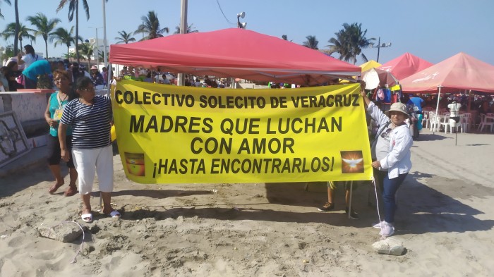 Integrantes del Colectivo Solecito de Veracruz instalaron un punto de venta de alimentos en el Playón de Hornos de esta ciudad para recaudar fondos con la finalidad de financiar los gastos de la brigada de búsqueda que busca a sus familiares desaparecidos.