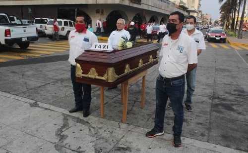 Taxistas agremiados al Servicio de Taxis de la Central de Autobuses de Veracruz (Sertacaver) colocaron un ataúd en la Macroplaza del Malecón para demandar seguridad en el municipio de Veracruz, ya que son víctimas de asaltos, lesiones e incluso homicidios a manos de delincuentes que operan con total impunidad en la ciudad.