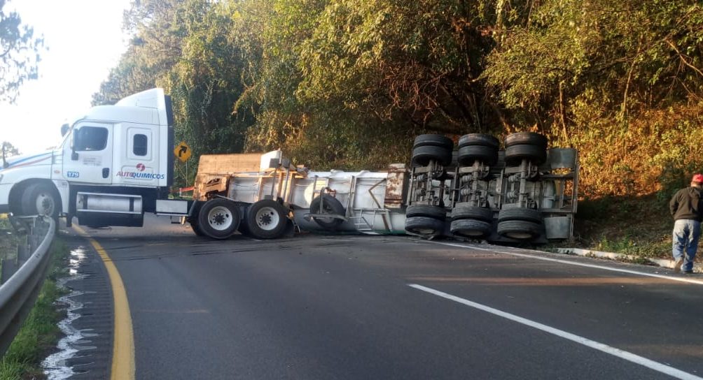 Se sabe que es un remolque tipo tanque el que terminó volcado, de una empresa con razón social Autoquimicos, por lo que los automovilistas y camioneros deberán tomar sus precauciones al circular a Puebla, o bien tomar vías alternas, por las maniobras de retiro de la unidad accidentada que se harán en próximas horas.