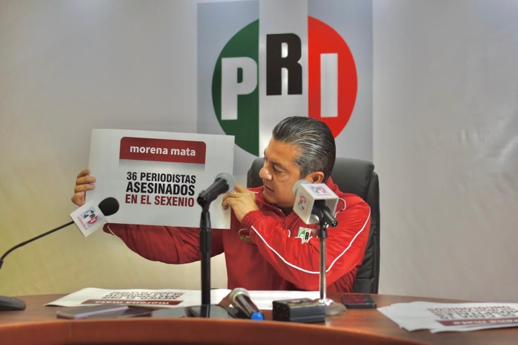 De manera simultánea, en concordancia y en respaldo a la postura de Alejandro Moreno Cárdenas, presidente nacional del PRI, acusó que este gobierno ha implementado como nunca en los últimos 40 años, un ataque brutal y sistemático contra los medios de comunicación, las instituciones, los organismos autónomos, y contra todos quienes piensan distinto, y se utiliza de manera ilegal, a las instituciones del Estado mexicano, para perseguir e intimidar a las voces de la oposición, mientras callan cuando los escándalos son en casa.