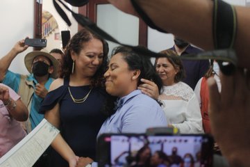 Una pareja de mujeres contrajo matrimonio igualitario por primera vez en Veracruz tras la promulgación del decreto que reforma los artículos 73 y 75 del Código Civil del estado.