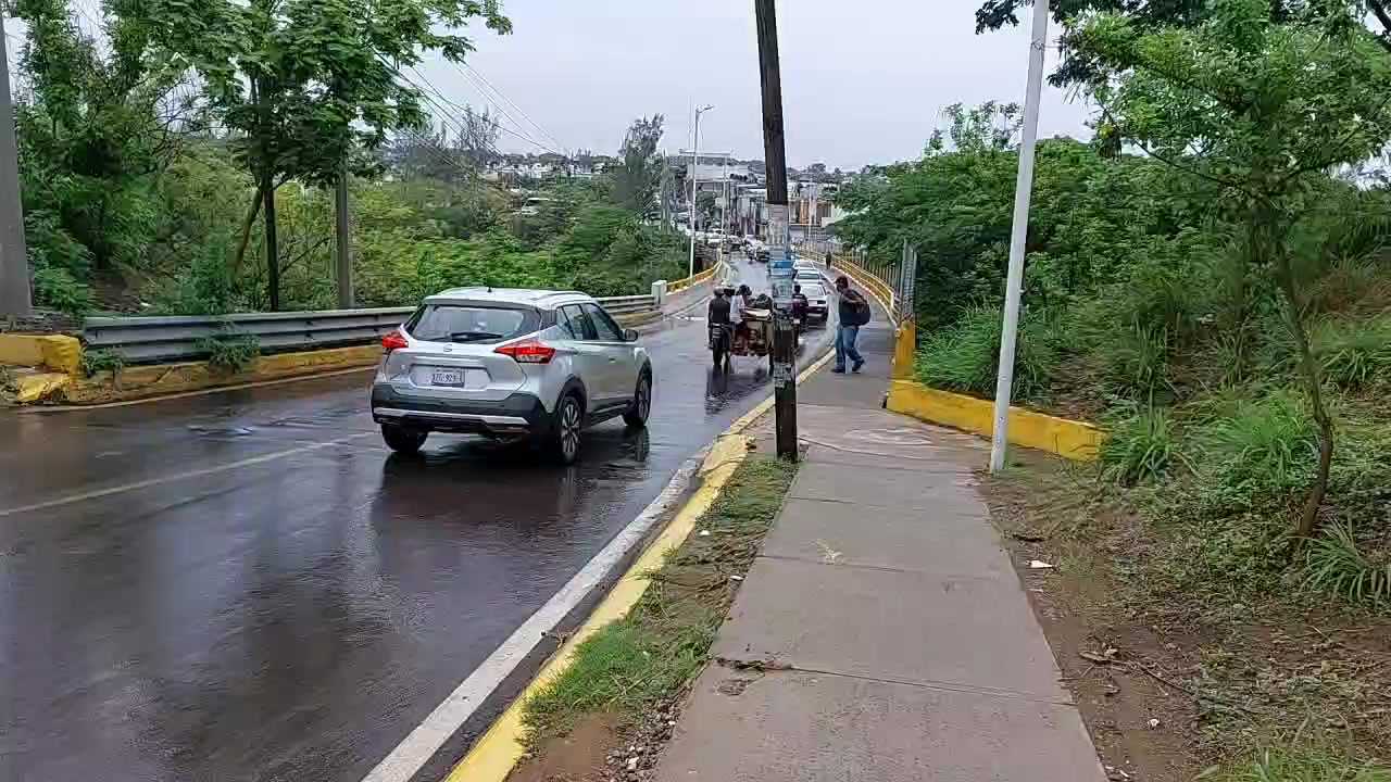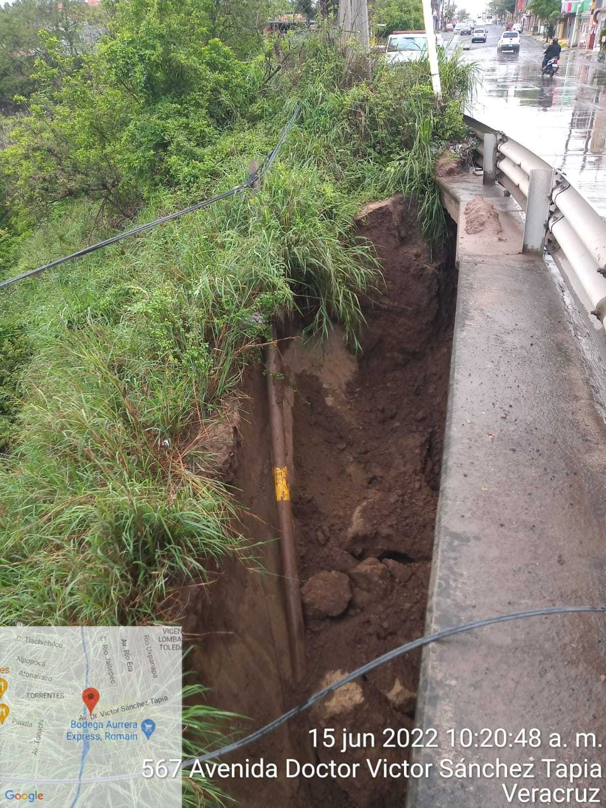 Se deslavó parte del puente Torrentes que se encuentra entre el fraccionamiento del mismo nombre y Río Medio al norte de esta ciudad de Veracruz.