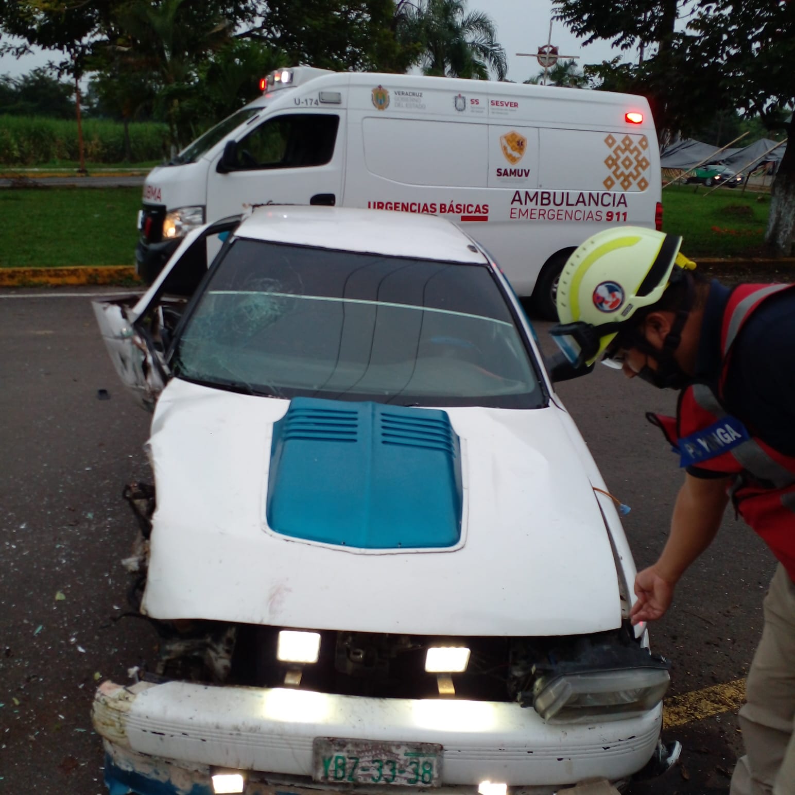Yanga, Ver.- Un aparatoso accidente fue el que se registró durante la noche de este domingo, luego de que el conductor de un vehículo Nissan-Tsuru terminó desbaratado tras subirse al camellón central e impactarse contra unas palmeras, cuando circulaba aparentemente a exceso de velocidad sobre el kilómetro 1 en el libramiento que comunica a la entrada del municipio de Yanga cerca de la carretera federal Córdoba-Cuitláhuac teniendo que intervenir elementos de la Policía Municipal y Guardia Nacional.